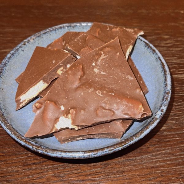 Este Quebradinho, feito com o melhor chocolate amargo com avelã delicadamente torrado.
